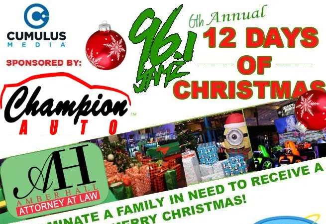 "Tallahassee's BIG Station" is helping families this Christmas with the 6th Annual 96.1 Jamz "12 Days of Christmas" Giveaway Sponsored By Amber Hall Attorney at Law, Champion Auto Sales & Skyline Express! Now through December 12th, submit your letter to nominate yourself or someone you know who is having a hard tim…