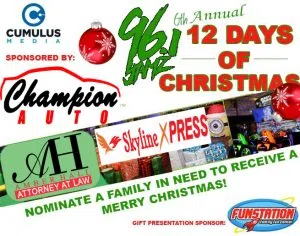 "Tallahassee's BIG Station" is helping families this Christmas with the 6th Annual 96.1 Jamz "12 Days of Christmas" Giveaway Sponsored By Amber Hall Attorney at Law, Champion Auto Sales & Skyline Express! Now through December 12th, submit your letter to nominate yourself or someone you know who is having a hard tim…